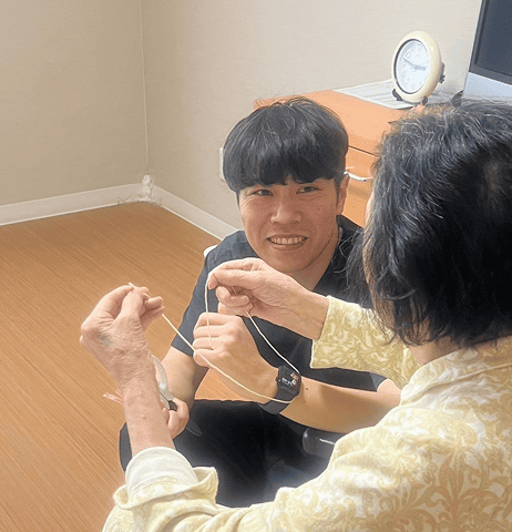 私はパーキンソン病の影響で手が震えたり、思うように体を動かせなかったりすることが多く、細かい作業には苦手意識を持っていました。今回、リハビリの一環としてマジックに挑戦することになりましたが、「本当にできるのだろうか…」と最初は少し不安でした。 最初に試した輪ゴムマジックでは、ゴムが細くてうまく指に引っかからず、なかなか思うようにできませんでした。しかし、しょうごさんが私に合った柔らかいヘアゴムを提案してくれたことで、格段にやりやすくなり、少しずつスムーズに動かせるようになりました。 しょうごさんの明るく軽快な司会は、イベント全体を一つにまとめ、終始あたたかく和やかな雰囲気を生み出していました。